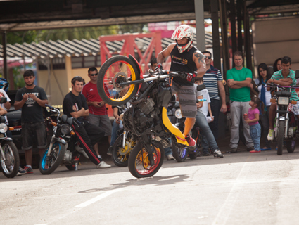 Manobras em cima das motos movimentaram os dois dias de evento no Parque da Oktoberfest