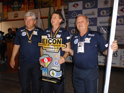 Adilo Rehbein, Mário Kist e Valdir Bruxel com o troféu conquistado por Santa Cruz
