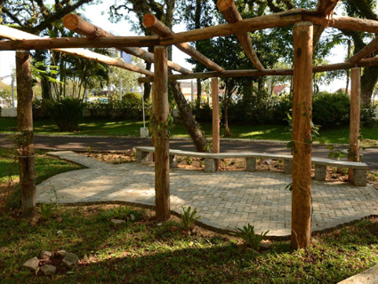 A estrutura mede cerca de 23 metros quadrados e dispõe de bancos para seus frequentadores apreciarem uma boa conversa enquanto bebem um bom chimarrão. No piso foram colocados bloquetes e ao redor canteiros com flores enfeitam o local.