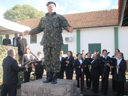 Como forma de abrilhantar a formatura militar, junto à banda do 7º BIB, estava um coral misto feminino, regido pelo maestro Abílio Piovesan. Após as honras militares, o major Cravo, subcomandante do 7º BIB, apresentou as tropas que se encontravam em forma.