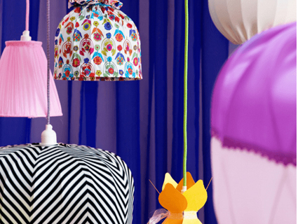 E que tal na iluminação? Você é o tipo de pessoa que adora o conceito “do it yourself”?  Então experimente misturar tecidos e iluminação! Com cola branca, pincel, um pendente de estrutura simples e têxteis garimpados, dá para criar uma peça única e destacar o projeto luminotécnico não apenas com a luz, mas com o visual autêntico.