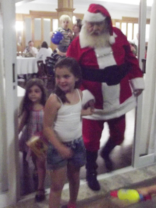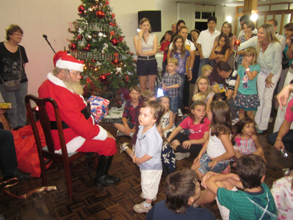 As crianças recepcionando o Papai Noel