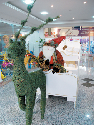 Mas não é somente nas ruas que a magia do Natal chega. Os shopping centers santa-cruzenses também preparam uma decoração bem características. Por coincidência, a arte do Max Shopping Center e do Shopping Santa Cruz foi idealizada por Cida Fontana e executada por Jahn Brasil e sua equipe.