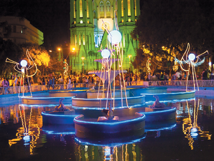 Laços, bolas, luzes, adereços variados e enfeites em diversas cores. Assim é o Natal, que antes mesmo de sua data, o 25 de dezembro, colore as ruas da cidade, deixando um clima mágico aonde quer que se olhe. As praças ganham um colorido especial, seja de dia ou de noite.