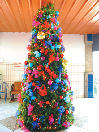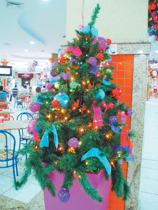 No Shopping Santa Cruz (Senador Alberto Pasqualine, 18) a opção foi pela renovação. Durante três anos consecutivos trabalhamos com as cores tradicionais. Este, que é o quarto ano que assina a decoração, Cida, para dar uma renovada e surpreender, a aposta foi ousar nas cores rosa, roxo, vermelho com predominância nos tons de azuis.