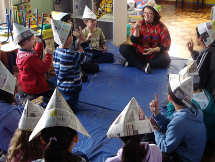Ter filhos pequenos potencializou esta paixão de Léla. “Com eles eu estou sempre inventando historinhas, musiquinhas, brincadeiras, a gente fica mais conectada com o encantamento”, explica a educadora que “também reeduca” e considera absolutamente complementar as áreas em que atua.