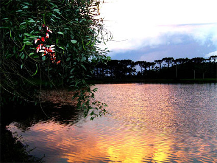 Ao lado do quiosque, ampla área verde juntamente com o belo lago