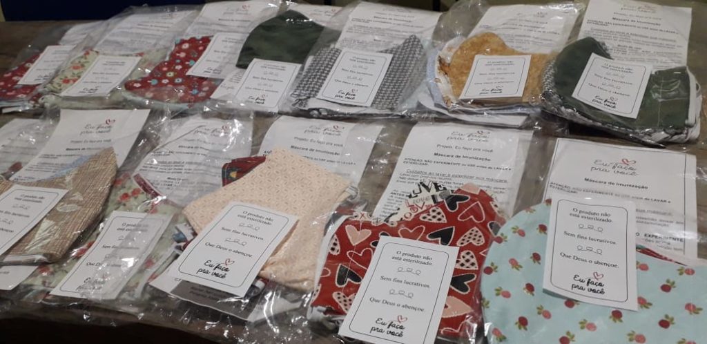 As máscaras são feitas à base de tecido estampado e branco 100% algodão, embaladas individualmente e possuem instruções de uso. O grupo faz parte de uma rede de projetos criada em Presidente Prudente – SP e atualmente possui voluntários em várias cidades do País.