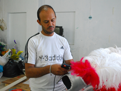 O carnavalesco Éverson Alexandre de Souza corre para finalizar