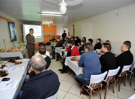“O atual cenário da economia brasileira revela muitas oportunidades e deve ser visto por uma ótica mais positiva”. A análise foi feita pelo economista do Banco Regional de Desenvolvimento do Extremo Sul (BRDE) e professor da PUC/RS, Celso Pudwel, durante o encontro. O economista abordou o tema “Cenários Econômicos e Linhas de Financiamento”, com a colaboração do gerente Ajunto do BRDE, Marlon Bentlin.