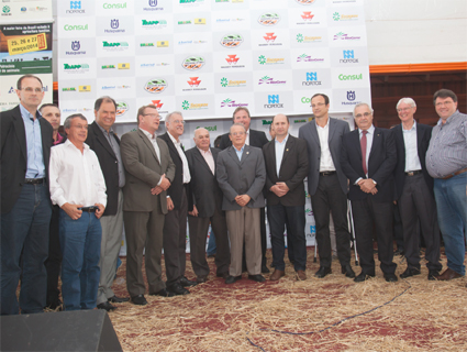 Governador do RS, Tarso Genro (C), juntamente com a Afubra, demais