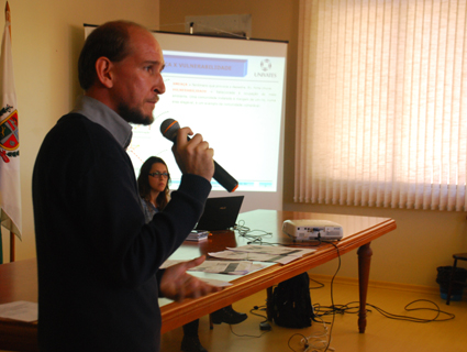 O professor Rafael Rodrigo Eckhardt, professor de Engenharia Ambiental na Univates e coordenador do Sistema de Monitoramento e Prevenção de Enchentes do Vale do Taquari esteve presente na reunião, onde apresentou a estrutura do trabalho exercido sobre o monitoramento e prevenção de alagamentos do Vale do Taquari e relatou as experiências que já existem nos municípios de Lajeado e Estrela. “Tudo se inicia em pontos a serem analisados. Realmente não há como resolver a situação de enchentes, mas em contrapartida há como melhorar a convivência, além de avanços para ações de contingência da Defesa Civil”, contou.