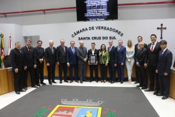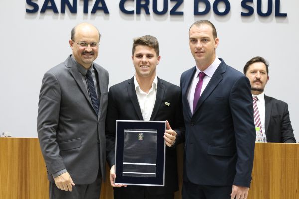 A Câmara de Vereadores de Santa Cruz do Sul realizou sessão solene nesta segunda-feira, dia 3, para prestar uma homenagem pelos 30 anos de passagem da Associação de Jovens Empreendedores de Santa Cruz (Ajesc). A proposição foi do vereador Paulo Henrique Lersch (PT) e a placa foi entregue ao atual presidente Diógenes Barbosa Tonello.
