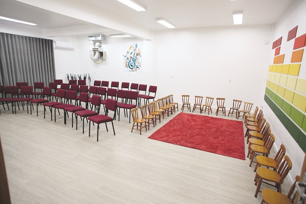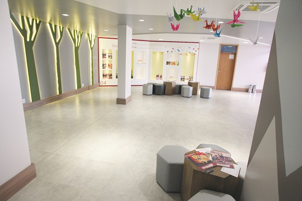 A estrutura conta com salas no subsolo sendo, duas de artes e uma de música, além da cantina e área de convivência em que há espaço coberto que é uma área muito bem aproveitada. Contando ainda com um parque de recreação para as crianças. “Preservamos muito a área verde, sempre buscamos causar o menor impacto possível para nos inserirmos no contexto em que podemos.