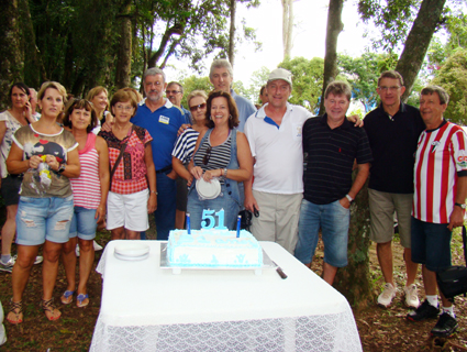 A diretoria da AABB diante do bolo de aniversário