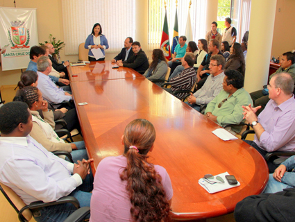 Na manhã desta quinta-feira, 28, a Prefeitura de Santa Cruz do Sul, através da Secretaria Municipal do PAC, deu mais um importante passo na busca em oferecer moradia de qualidade na cidade. Em solenidade realizada no Gabinete da Prefeita Kelly Moraes, foram anunciados os nomes dos 306 contemplados com as residências que estão em construção no Loteamento Santa Maria, no bairro Santa Vitória. O encontro reuniu secretários municipais, vereadores, lideranças comunitárias e cerca de 15 futuros moradores.