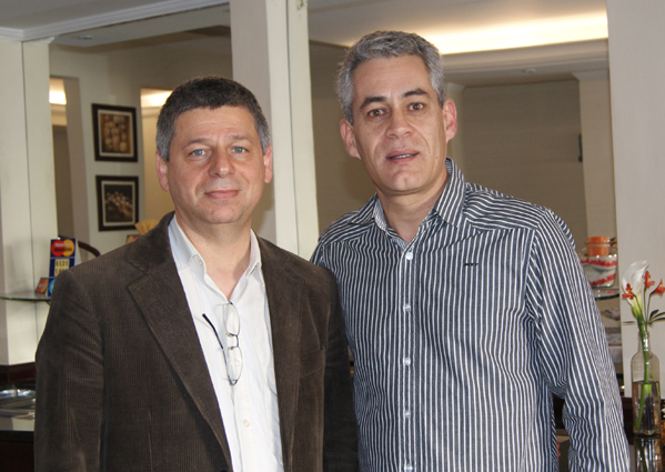 O proprietário da Casa das Cucas, Ubiratan Trindade, com o presidente da Apae, Edemilson Severo