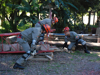 Técnicas para o levantamento de estruturas colapsadas para resgate de vítimas fizeram parte do treinamento