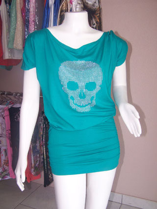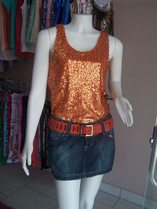 Blusa com brilho e saia jeans, combinando com cinto: look para o Verão 2013