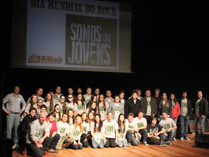 Na última terça-feira, 15 de julho, o palco do Teatro Mauá transformou-se em um túnel do tempo durante o 7º Aulão de História – Dia Mundial do Rock. Com o tema “Awopbopaloobopalopbamboom: O rock canta & conta a história do Brasil”, a programação, que teve como banda homenageada a Íris Ativa, uma das mais tradicionais de Santa Cruz do Sul, contou com mais de 60 alunos, ex-alunos e professores do Colégio Mauá. Ao todo, o evento arrecadou 270 kg de alimentos não perecíveis, doados para a Apae do município. Ultrapassando as fronteiras de ser reconhecido apenas como um gênero musical, o rock passou a fazer parte da vida de muitas pessoas e é por isso que, há sete anos, o Aulão de História comemora o Dia Mundial do Rock, celebrado em 13 de julho. No ano em que o Golpe Militar de 64 completa 50 anos, o começo do movimento pelas Diretas Já 30 anos, o Plano Real e a morte de Ayrton Senna 20 anos, a história recente do Brasil foi apresentada em forma de música, teatro, poesia, fotografia, televisão e cinema.