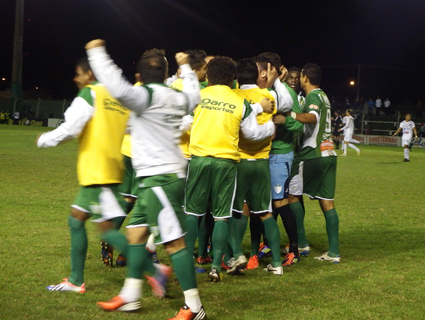 Jogadores periquitos comemoraram o gol na partida de ida da final