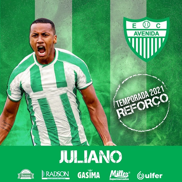 O Avenida anunciou no final da manhã desta quarta, 16, mais um jogador para a disputa da Divisão de Acesso 2021. Trata-se do meio-campista Juliano, 26 anos.