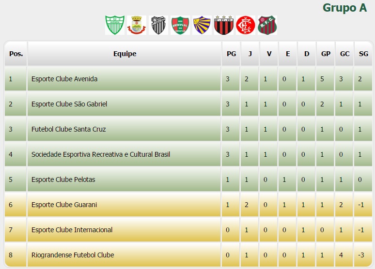 Com os três pontos e a goleada o Avenida assumiu a liderança do Grupo A, com um jogo a mais em relação a São Gabriel, Santa Cruz e Brasil-FAR, que também têm três pontos.(confira a classificação do Grupo A abaixo). A próxima partida do Avenida é o clássico contra o Santa Cruz, dia 23 de março, no Estádio dos Eucaliptos.