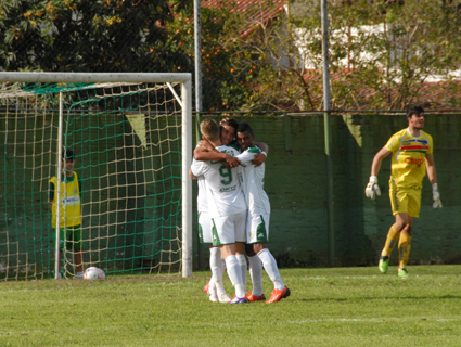 Jogadores do Periquito comemoram um dos três gols diante do Veranópolis