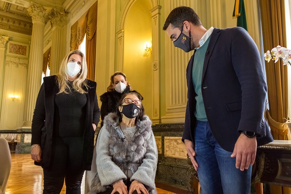 Com os olhos cheios de encanto, a idosa conheceu as dependências da sede do Executivo que, em 2021, também completou seus 100 anos. Ela foi recepcionada pelo governador Eduardo Leite, no Salão Negrinho do Pastoreio, em encontro promovido pelo Sindicato dos Hospitais e Clínicas de Porto Alegre (Sindihospa). A entidade, por meio do Núcleo de Residenciais Geriátricos – Moderna Idade, intermediou a escolha de Eloína para ser a pioneira da vacinação no RS.