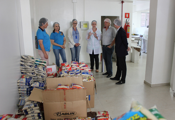 Estiveram presentes no momento da entrega os representantes do Basc Valdir Bruxel, Jussara Jost e Sirlei Biasibetti, além do diretor geral do HSC, Vilmar Thomé, e da coordenadora de contabilidade e caixa da Instituição, Melissa Kanitz. Interessados em colaborar com a casa de saúde doando alimentos podem entrar em contato pelo telefone (51) 3713-7481.