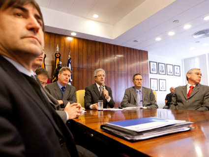 Anúncio foi feito na sede da instituição, em Porto Alegre, pelo presidente Túlio Zamin (C)