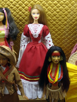 Nosso país também está presente nesta exposição mundial. A caixa Culturas do Brasil traz a Barbie Frevo, Barbie Maria Bonita, Barbie Bahia, Barbie Carimbó, entre outras. O Rio Grande do Sul não ficou de fora e tem sua representação com a Barbie Prenda, o único exemplar produzido no mundo, em 2007.