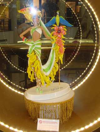 Suas criações incluíam turbantes repletos de flores e de frutas e seus sapatos plataforma foram uma criação inédita no mundo da moda. Uma estética que ficou mundialmente conhecida pelo exagero com que traduziu ícones tropicais. O exemplar da boneca também está na exposição.