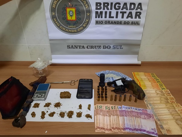 Na manhã desta sexta-feira, 27, a Brigada Militar de Santa Cruz do Sul, através de policiais da Força Tática, apreendeu um adolescente, de 17 anos, por tráfico de drogas e posse ilegal de arma de fogo de calibre restrito, no Bairro Margarida.