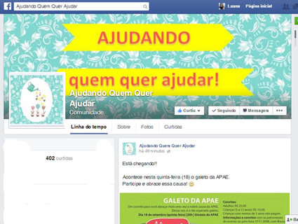 Aproximar ações que precisam de ajuda, com pessoas que querem ajudar, mostrando de que forma isso pode ser feito. Esse é o objetivo da página “Ajudando quem quer ajudar”, criada na rede social Facebook no início desse mês. Divulgando ações e projetos da nossa cidade e da região que precisam de ajuda para acontecer e sobreviver, e também os resultados alcançados, para contagiar as pessoas, em poucos dias, a comunidade já alcançou mais de 400 curtidas, comprovando que muitas vezes as pessoas querem ajudar, mas não sabem como.