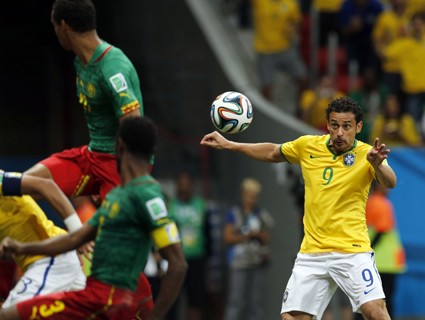 Fred marcou de cabeça o terceiro gol do Brasil contra Camarões