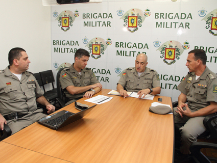 Major Azevedo (centro) e demais Comandantes que integram o 23º Batalhão da Polícia Militar: avaliação do relatório das ocorrências atendidas nos últimos 4 anos na região é satisfatório