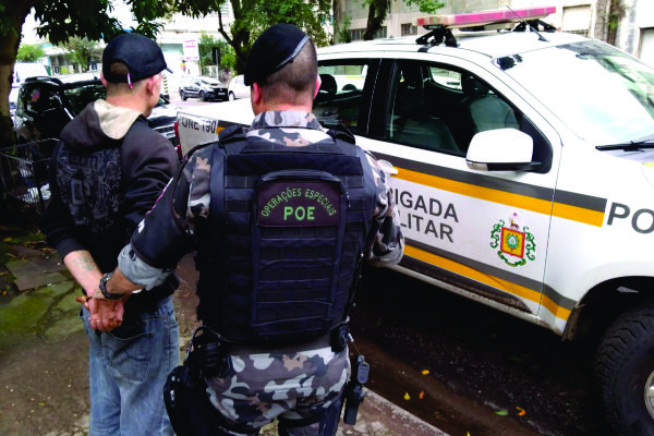 ​A Brigada Militar de Santa Cruz do Sul, na tarde desta sexta-feira (14/09), através de Policiais Militares do Pelotão de Operações Especiais (POE) do 23°Batalhão de Polícia Militar (23°BPM), durante ações de polícia ostensiva no Bairro Centro, prendeu um indivíduo que possuía mandado em seu desfavor aguardando cumprimento com pena privativa de liberdade de 01 ano e 06 meses de reclusão, em regime semiaberto, por furto.