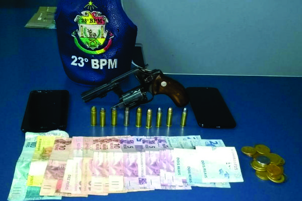 Após identificação, foi verificado que se tratava de indivíduo foragido após ter rompido a tornozeleira eletrônica no dia 14 deste mês, e em posse de uma arma calibre 38 com 9 munições intactas, 02 celulares, R$ 239,00 em notas diversas.