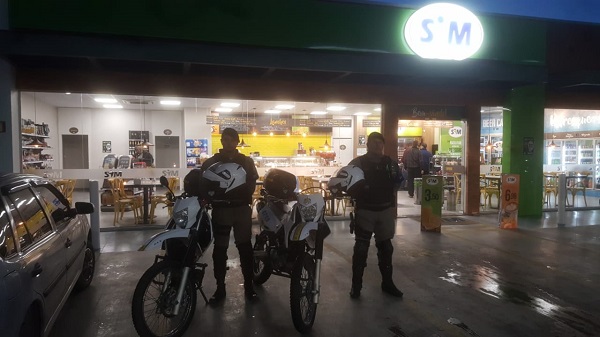Foram abordados 19 veículos, sendo destes 09 automóveis e 10 motocicletas e identificadas 43 pessoas e também, realizadas 16 visitas a estabelecimentos comerciais, farmácias, postos de combustíveis, supermercados e uma escola onde foi realizado contato com a diretoria responsável devido a uma festa comemorativa que estava ocorrendo juntamente aos alunos.