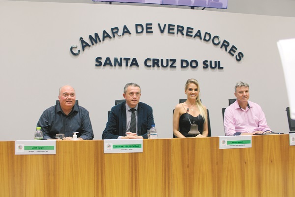 Bruna Molz vai comandar a Câmara de Vereadores de Santa Cruz do Sul em 2023. Ela foi eleita por 16 votos, com abstenção de Alberto Heck (PT), e vai suceder Rodrigo Rabuske no cargo a partir do dia 1º de janeiro. A parlamentar do Republicanos encabeçou uma chapa única e tem como vice Gerson Trevisan (PSDB); primeiro secretário Licério Agnes (PSD) e segundo Jair Eich (Progressistas).