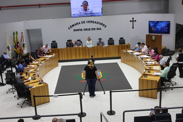 Em sessão extraordinária realizada nesta terça-feira, dia 8, a Câmara de Vereadores de Santa Cruz do Sul realizou a votação de seis projetos de autoria do Executivo. Após os debates na tribuna, apenas o projeto que dispõe sobre alterações no Código Tributário ficou de fora da pauta de votação. Foram aprovados o projeto que modifica a legislação municipal que dispõe sobre o cargo de Guarda Municipal, aumentando a sua atuação. O vereador Mathias Bertram (PTB) se posicionou contra o projeto na tribuna e foi o único voto contrário. Já o projeto de lei que dispunha sobre o quadro de cargos e funções e o regime jurídico dos servidores, criando gratificação de auditoria externa e gratificação de função foi aprovado com o voto de minerva da presidente Bruna Molz (PTB). Os contrários foram de Luizinho Ruas, Mathias Bertram e Francisco Carlos Smidt (PTB) e Cléber Pereira (MDB),