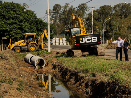 Funcionários da Secretaria de Obras e Viação estão trabalhando esta semana na ampliação da canalização da Avenida Euclides Kliemann, no bairro Progresso, quase em frente ao Residencial Santo Antônio. Em uma extensão de 150 metros, na lateral da rua, está sendo implantada uma nova tubulação, com canos de um metro de diâmetro para dar maior vazão às águas pluviais.