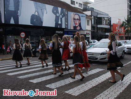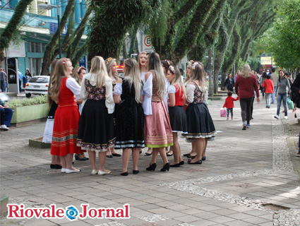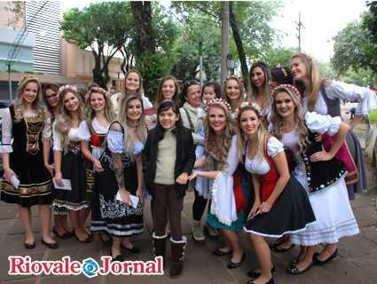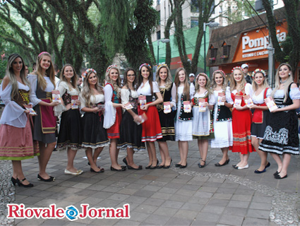 Na manhã deste sábado as candidatas à Rainha e Princesas da 32ª Oktoberfest fizeram uma caminhada pelas ruas centrais da cidade para divulgar o concurso que ocorre no próximo domingo, 15 de maio, às 19 horas, no Ginásio Poliesportivo, em uma promoção da Associação das Entidades Empresariais (Assemp) e Prefeitura.