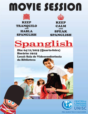 O Centro de Línguas e Culturas (Celinc) da Unisc está promovendo mais um Movie Session. Desta vez, o tema central é línguas. O filme “Spanglish” (Espanglês), como o nome sugere, é uma mistura de Espanhol com Inglês, e narra uma história que mostra de forma divertida o processo de aprendizagem de inglês de uma imigrante mexicana nos Estados Unidos, dentre outros temas presentes no enredo.