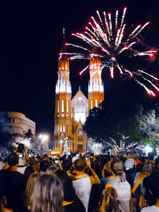 Enquanto os arredores da Catedral São João Batista se iluminavam com o espetáculo pirotécnico, o Papai Noel se dirigiu a sua casa, localizada na Praça Getúlio Vargas, para receber o carinho das crianças. Ele permanece diariamente no local a partir das 18h.