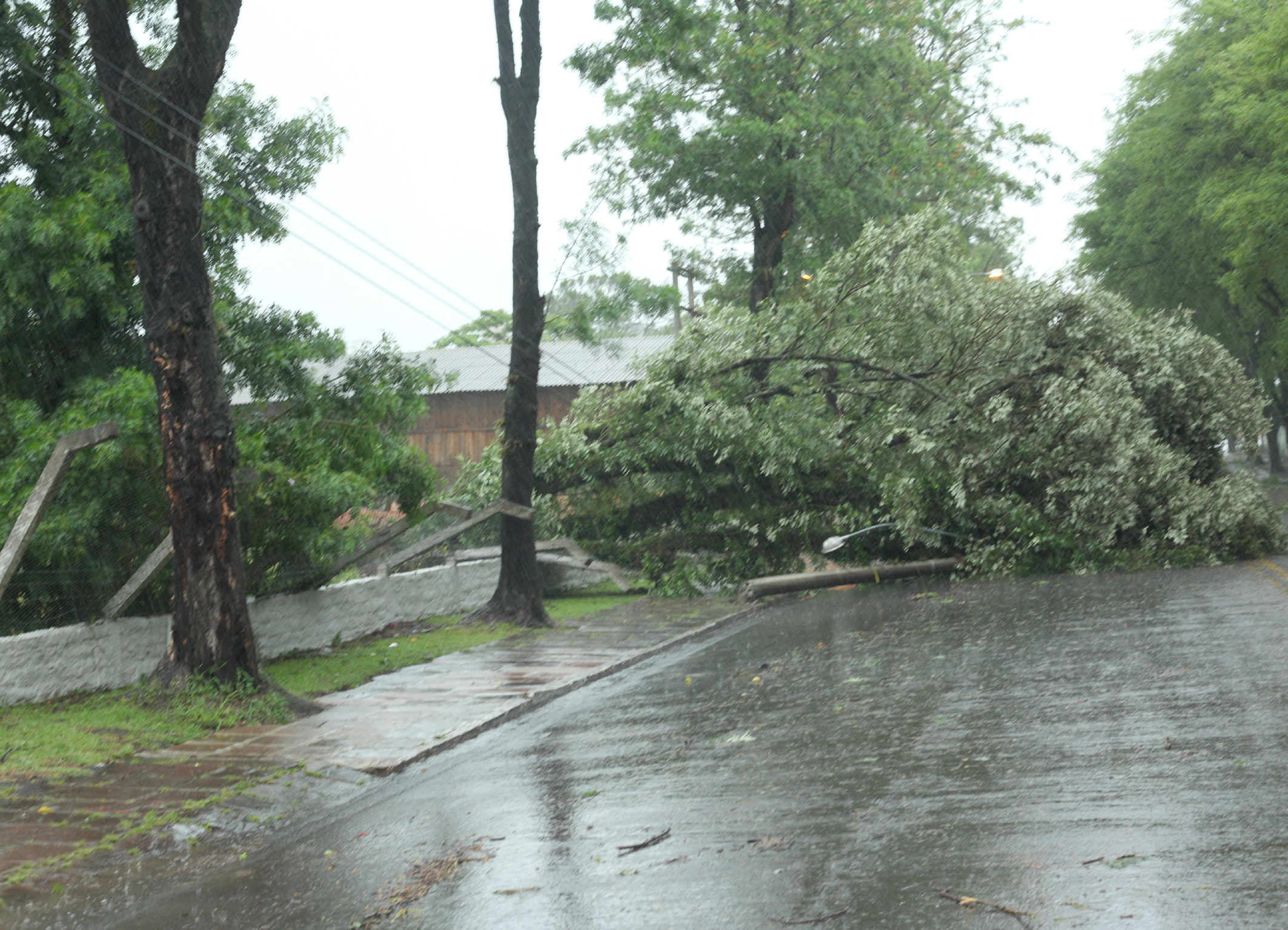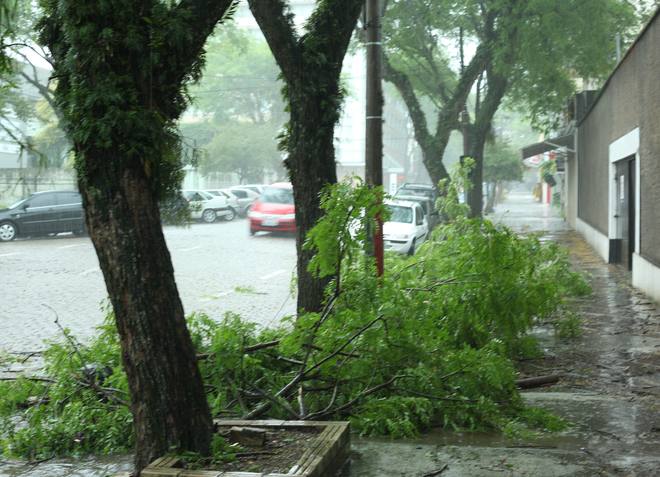 Começo de semana atípico em Santa Cruz do Sul. Esta segunda-feira, 11 de novembro, nem de longe pareceu com os dias de calor intenso das últimas semanas. Árvores caídas, postes quebrados, santa-cruzenses desabrigados e até mesmo muros derrubados são o reflexo do temporal que atingiu o município no meio da madrugada. A preocupação maior da Defesa Civil local é o nível do Rio Pardinho.