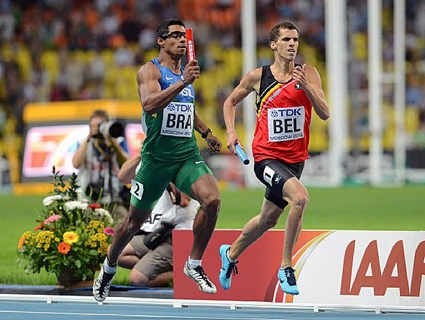 A equipe brasileira masculina do revezamento 4×400 m terminou nesta sexta-feira em sétimo lugar na final do Campeonato Mundial de Atletismo, no Estádio Olímpico de Moscou. Depois de 12 anos, o Brasil voltou ao grupo dos melhores, completando a prova em 3:02.19.