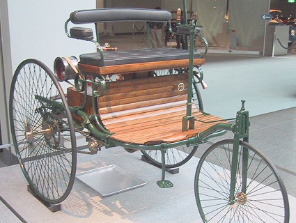 Uma réplica do Benz Patent Motorwagen de 1886, o primeiro automóvel realmente movido por um motor de combustão interna