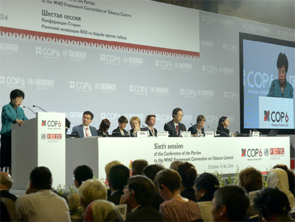 No primeiro dia da conferência ocorreu a abertura onde a ministra da Saúde da Federação Russa, Veronika Skvortsova, concedeu entrevista aos jornalistas. De acordo com o site oficial da COP6, ela disse que a Rússia hoje é um exemplo para muitos países sobre a implementação da Convenção-Quadro de Controle do Tabaco da Organização Mundial de Saúde. Em 2013, a Rússia adotou a lei antifumo, que reflete todas as suas disposições fundamentais. “Na verdade, nós já podemos resumir os primeiros resultados das medidas para reduzir o consumo de tabaco – de 16% a 17%. Note-se que oito em cada 10 russos apoiam as medidas duras sobre o controle do tabaco no nosso país”, observa.